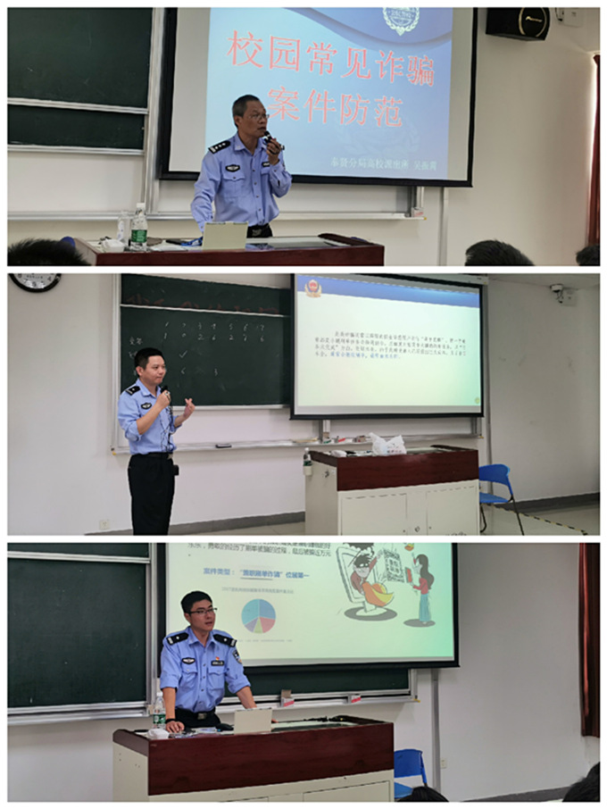 高校派出所的警官们根据多年从警经验并结合高校发生的多起诈骗案例,生动地向同学们列举了基于电信的“猜猜我是谁”、“兼职诈骗”,依托电商平台的“刷单诈骗”、“网上购物陷阱”以及所谓的“良心商家退款”等多种诈骗形式。此外,他们还重点介绍了校园多发的QQ诈骗和校园贷诈骗,警示同学们提高危机意识和辨别能力并掌握基本常识,做到不贪小便宜、不轻易转账、理性消费。
