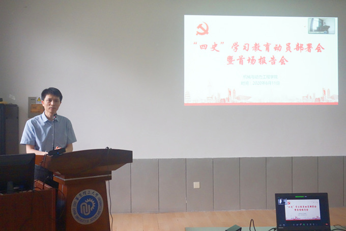 项延训首先作学习动员讲话。他向大家介绍了“四史”学习教育的背景和重要意义,传达了学校“四史”学习教育实施方案的主要精神,要求师生党员认真按照学校、学院要求,把“四史”学习教育贯穿到自身工作、学习中去,进一步坚定党员的初心和使命。