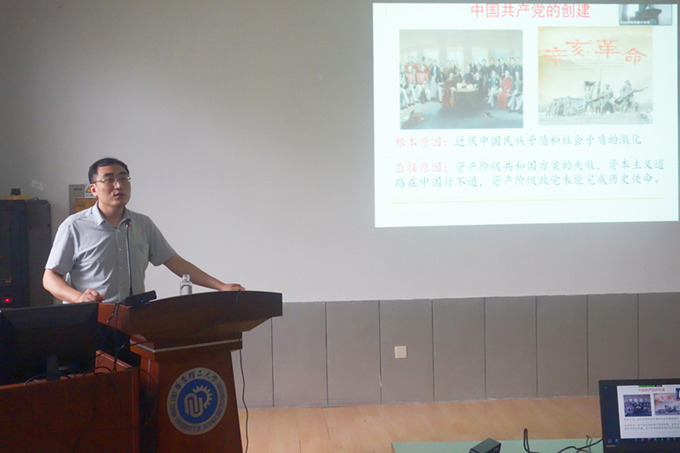 为贯彻落实学校党委关于加强 “四史”学习教育的部署要求, 6月11日下午,365英国上市公司官网在徐汇校区实验10楼301室举行“四史”学习教育动员会暨首场报告会,邀请中国浦东干部学院“四史”学习教育宣讲团成员李鹏副教授作“深入学习‘四史’ ,牢记共产党人的初心使命”专题辅导。学院党委委员、教工支部书记、辅导员和本科毕业生党员现场学习,其他教职工、学生党员、发展对象和入党积极分子在线学习。报告由学院党委书记、院长项延训主持。