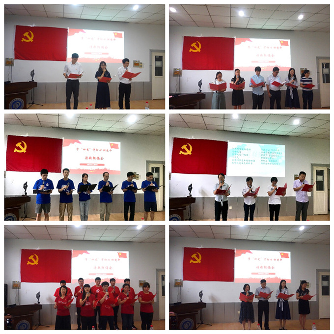 奉贤校区本科生党支部、博士生第二党支部、化工机械第二党支部和机设师生党支部深情朗诵了《我爱你中国》、《我的祖国 我的母亲河》、《我骄傲,我是中国人》、《中华颂》,讴歌祖国大好河山,赞美中华民族伟大精神,表达了对祖国母亲的无限热爱和依恋;化工机械第一党支部、学工系统-办公室工作联合党支部、动力工程与力学党支部和实验中心党支部带来的《不忘初心跟党走》、《党旗颂》、《信念永恒》、《初心永恒》带领大家追忆党的峥嵘岁月以及改革开放后我国取得的巨大成就,表达了对党的热烈拥护与爱戴;材料党支部和复杂与智能系统师生党支部朗诵了毛泽东主席的《七律•长征》、《沁园春•雪》和《沁园春•长沙》,带领大家领略了老一辈革命家的豪情壮志;机械电子工程师生党支部和博士生第三党支部朗诵的《昨天,今天,明天》展现了中国共产党在党和国家发展的重大历史关头带领中华民族砥砺前行,谱写中华民族发展史和人类发展史上华彩乐章的历程;学院党委中心组成员杨倩、李煜佳、王卫泽、刘长军朗诵了安琦的原创诗词《参观渣滓洞白公馆有感》,歌颂了革命先烈为了信仰舍身取义、不畏牺牲的高尚情怀,让在场观众深刻感受到信仰和精神的力量。