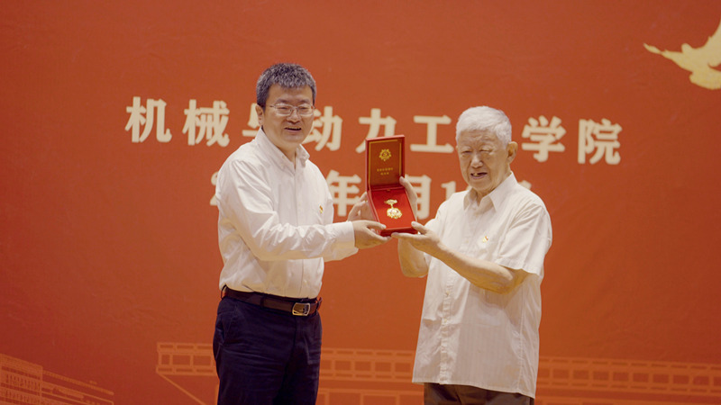 在受到表彰的10位优秀共产党员中,化工机械第二党支部的李培宁先生1959年入党,用实际行动深刻诠释了共产党员的初心和使命。杨强为他颁发了“光荣在党50年”纪念章,这枚沉甸甸的纪念章是对老党员的最高礼赞。李先生回顾了自己几十年的奋斗经历,希望下一辈要勇担时代使命,积极主动作为,奋力谱写新时代的赞歌,不辜负党和国家所托。