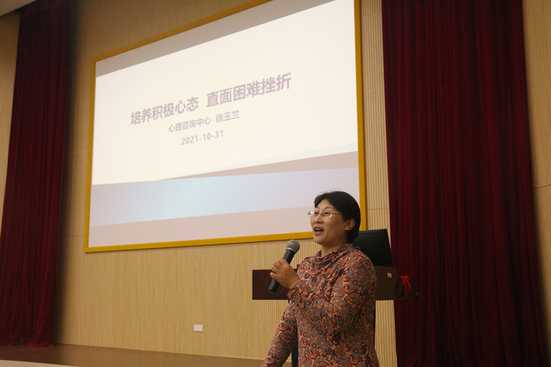 10月31日,学院邀请校心理咨询中心老师徐玉兰在奉贤校区A200教室给新生开展了以“培养积极心态 直面困难挫折”为主题的心理讲座。徐玉兰启发各位新生在遇到困难和挫折时要始终保持积极乐观的心态,善于利用学校的各种资源,主动寻求心理援助,增强自我心理保护意识。她还分享了调节情绪的一些方法。这次讲座对于同学们直面大学学习和生活上的问题很有帮助,同学们深受启发。
