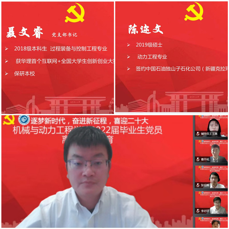 365英国上市公司官网党委始终将党性教育与落实立德树人根本任务相结合,一直十分重视毕业生党员教育,积极探索新时代党员教育工作新思路、新方法,已连续6年为毕业生党员举办“最后一堂党课”主题教育,成为党性教育工作的品牌。本次活动受疫情影响,采用线上形式进行,为使教育活动走实走深更走心,学院党委精心组织实施,毕业生党员严格落实要求,有效促进了毕业生党员党性的增强,取得了良好的教育效果。