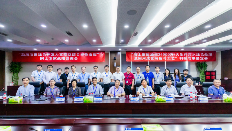 鉴定会由现场考察和会议质询两部分组成。专家在中海石油(中国)有限公司秦皇岛32-6作业公司智能油田操控中心通过云考察的方式参观了CEPJ重质油田平台,调研了位于该平台的24000方/天生产污水绿色处理及回用成套装备,系统了解了平台生产水处理模式及本项目装备、工艺的基本运行情况。由项目主要完成单位依次进行汇报后,经过专家组质询和讨论,一致认为,该成果围绕海上重质油田油品密度高、油水比例波动大、产水量高等复杂苛刻工况条件,构建了物理绿色分离为核心的海上重质油田生产污水处理新模式,吨水处理碳减排90%,实现了油回收、水回注、化学破乳剂近零消耗,攻克了海上平台水处理扩容提标的空间、载荷“瓶颈”难题。