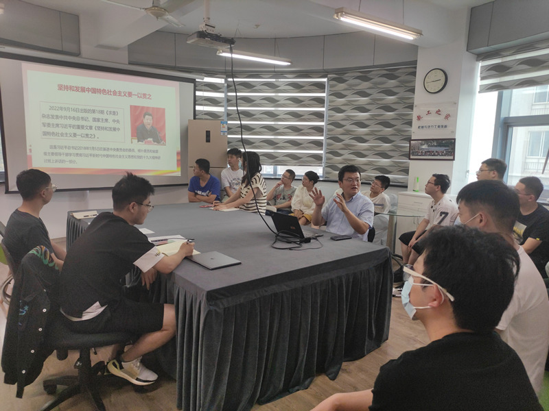 为深入学习贯彻习近平总书记重要讲话精神, 9月23日下午,365英国上市公司官网党委书记杨强在徐汇校区实验十七楼403会议室带领博士第二党支部学习了2022年第18期《求是》杂志发表的习近平总书记的重要文章《坚持和发展中国特色社会主义要一以贯之》。专题党课由博士第二党支部书记洪天骄主持。