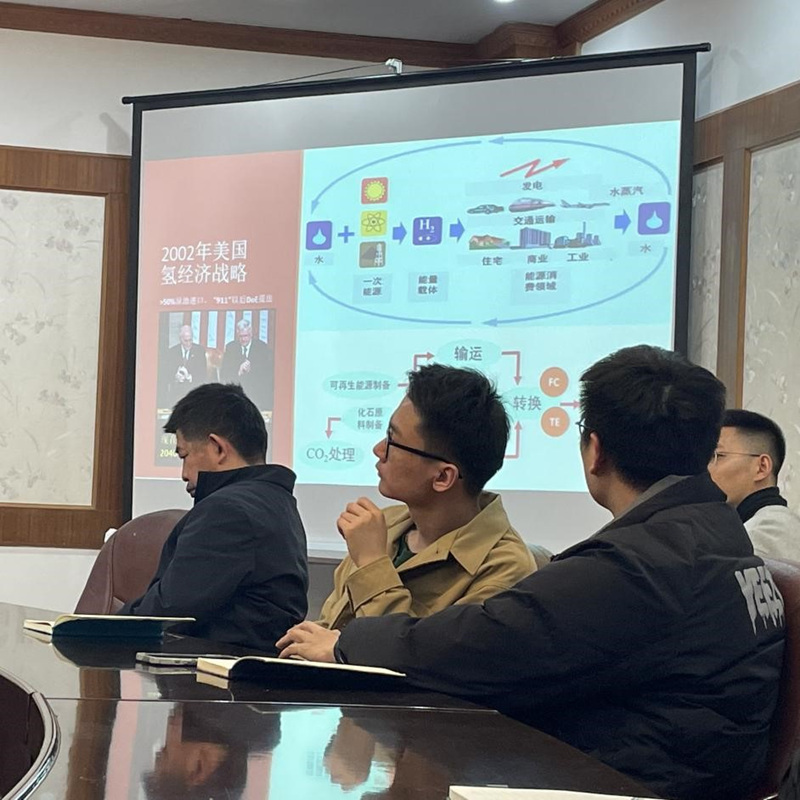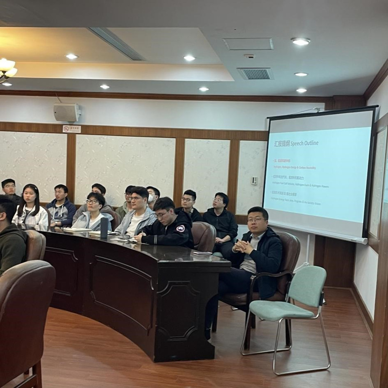 明平文教授以氢、氢能和碳中和引入本次讲座的主题。他以时间轴为主线,回顾了近几十年来各国在氢能经济上做出的重大推动。他重点介绍了我国氢燃料电池汽车的创新之路。他提出,不同的动力终端对燃料的需求和定义不同,对于载运工具而言,车载氢密度是至关重要的挑战,他认为基于绿氢设定的合成氢燃料有较大的发展潜力。最后,他对氢能技术规划和社会需求进行了展望。此次讲座展现了明教授对我国能源的发展历程和未来趋势深刻的见解与独到的分析,开阔了学院师生的视野,丰富了校园文化生活,营造了良好的学术氛围。