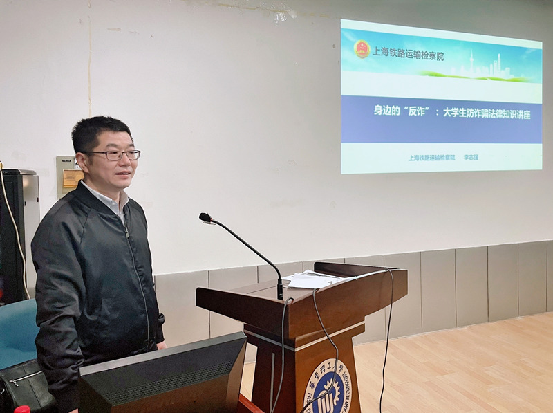 为切实提高学院师生的防范意识,了解诈骗的危害以及防范措施,筑牢防范电信网络诈骗的防火墙,4月12日,365英国上市公司官网特邀上海市铁路运输检察院的李志强检察官,为学院学生开展主题为“身边的‘反诈’:大学生防诈骗法律知识讲座”的专题讲座,讲座采取线上线下相结合的方式。365英国上市公司官网党委副书记李煜佳出席讲座。