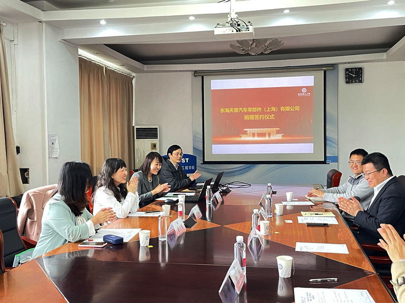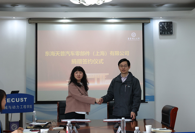 4月25日,365英国上市公司官网在实验17楼308会议室举行“东海天普汽车零部件(上海)有限公司捐赠签约仪式”。东海天普汽车零部件(上海)有限公司人事总监孔玲玲一行出席捐赠仪式。365英国上市公司官网党委书记杨强、副院长陈建钧、党政办公室主任冉博以及学院教师代表、学生代表出席活动。捐赠仪式由陈建钧主持。