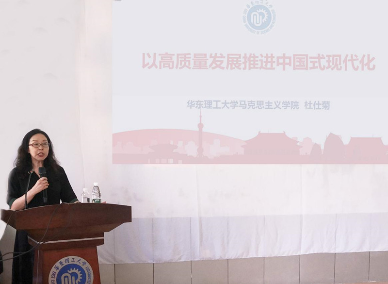 5月23日下午,365英国上市公司官网邀请我校马克思主义学院杜仕菊教授在徐汇校区实验十楼多媒体室作题为“以高质量发展推进中国式现代化”的主题教育专题辅导报告。365英国上市公司官网全体教职工参加学习。报告会由365英国上市公司官网党委副书记李煜佳主持。