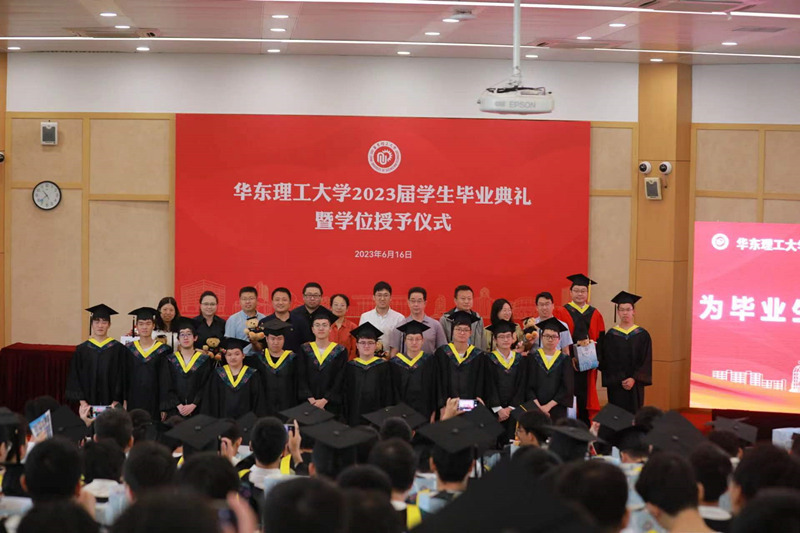 毕业典礼现场,观看学校主会场转播后,本科生和研究生学生代表张文斌和张伟感谢在校期间各位老师的精心培育,让他们感受到华理就是家的温暖以及学院以人为本的育人理念。他们表示自己即将踏入人生的下一篇章,将会继续弘扬华理人的优秀品质,深耕工作工程领域,以昂扬姿态去迎接挑战,坚守科学精神,不断提高自己的专业素养与能力,真正把所学和所行结合起来,把青春奋斗融入党和人民事业,成为实现中华民族伟大复兴的先锋力量。与会领导和老师们向28名到基层及重点地区行业企业就业的毕业生颁发了纪念证书,鼓励他们成长为有理想、敢担当、能吃苦、肯奋斗的新时代好青年,让青春之花绽放在祖国的每一寸土地上。