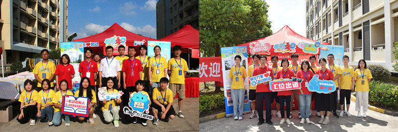 学院为新生设置了留影纪念区域。新生及家长们与手持宣传标语和宣传背景合影,记录这一重要时刻。