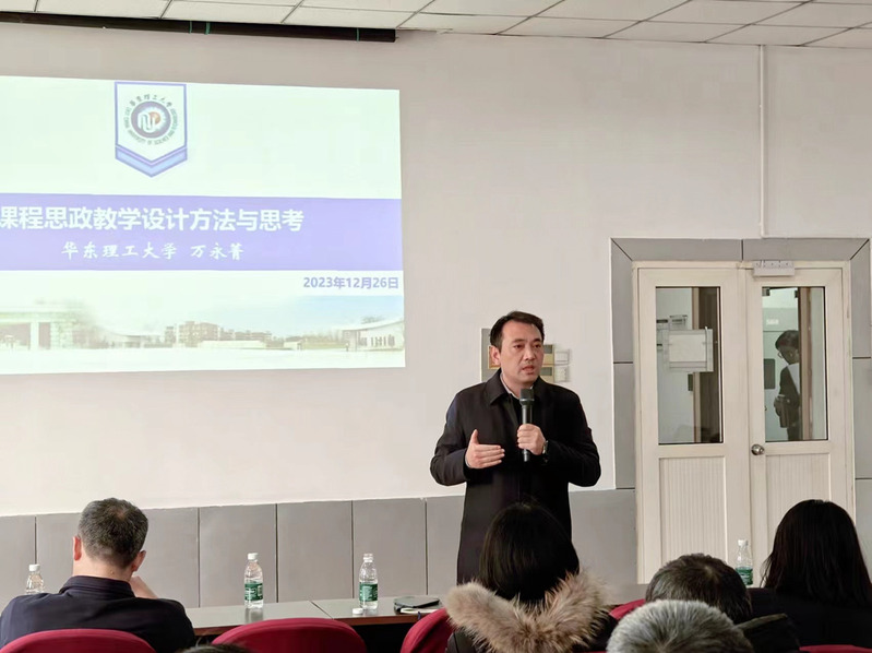 为深入学习贯彻党的二十大精神,提升教师的课程思政教学水平,12月26日下午,365英国上市公司官网举行全体教职工理论学习,邀请学校教务处副处长万永菁教授作题为“课程思政教学设计方法与思考”辅导报告。365英国上市公司官网党政领导班子全体成员及全体教师参加学习。学习会由365英国上市公司官网副院长陈建钧主持。