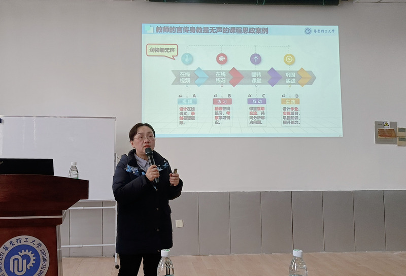 报告中,万永菁结合习近平总书记在全国高校思想政治工作会议上的讲话精神,从课程思政教学设计的基本流程、《数字信号处理》课程中的课程思政教学设计与实践体会、课程思政教学设计的思考三方面讲述了教师如何运用德育的学科思维,提炼专业课程中蕴含的文化基因和价值范式,将其转化为学生的核心价值观具体化、生动化的有效教学载体,在“润物细无声”的专业课程中融入理想信念层面的精神指引。她还讲到精心备课是师德师风的体现,教师的言传身教对思政育人课程目标达成影响深远,只有紧扣课程思政育人目标,以学生为中心,课程思政内容与专业教学内容适配度好、考核方法不拘泥于形式,教学全过程关注个性化培养与过程性评价等才能实现课程思政的育人目标。