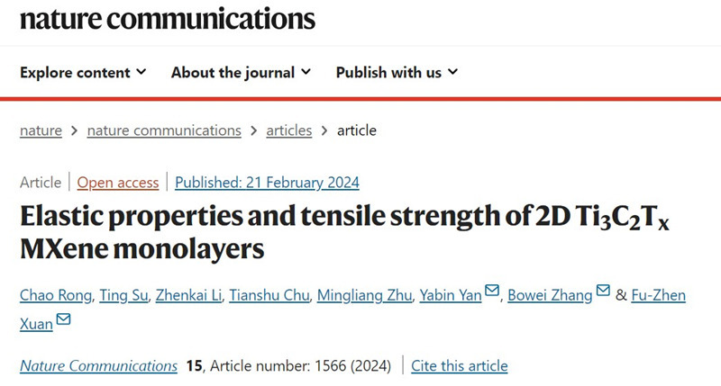 近日,我校365英国上市公司官网张博威等在Nature Communications 上发表了题为 “Elastic properties and tensile strength of 2D Ti3C2Tx MXene monolayers” 的研究论文,在线报道了该课题组在Ti3C2Tx基柔性传感材料结构强度领域的研究进展,提出一种可靠、直接、定量的方法来测量单层Ti3C2Tx纳米片的力学性能。