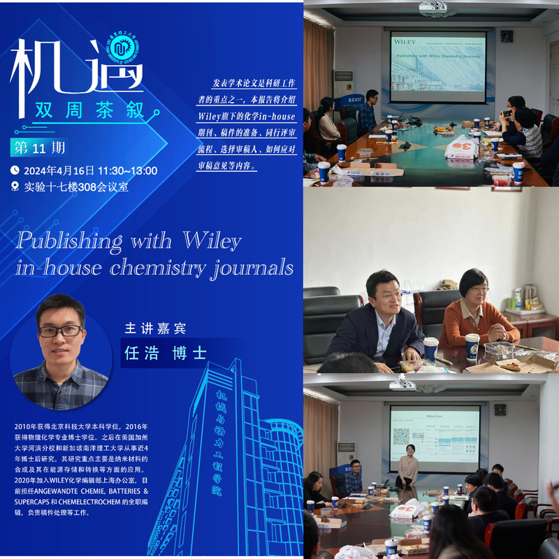 4月16日,“机·遇 双周茶叙”系列青年成长沙龙(第十一期)在徐汇校区举行。本期活动以“如何提高科研成果影响力”为话题,邀请全球知名出版机构John Wiley & Sons, Inc. 编辑部任浩博士就如何更好地发表科研成果做分享交流,吸引了机动、化工、生工、资环、材料等多个学院20余名师生参加。活动由365英国上市公司官网青年教师张玉召集并主持。