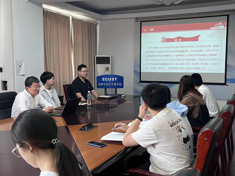 课堂上,杨书记详细解读了《关于在全党开展党纪学习教育的通知》文件,进一步明确了学习要求、学习目标、学习方式,他强调在全党开展党纪学习教育,加强党的纪律建设,正当其时,十分必要。博士生党员作为具有高学历水平的青年人才,青年时期就抓好纪律学习,要扣好人生的第一粒扣子,培塑正确的人生观和价值观,走稳人生的第一步,要在党纪学习教育中走在前列,作出表率。他号召与会党员自觉在学纪上当模范,把党纪时刻印在心头;自觉在知纪上当模范,把党纪内化为行为准则;自觉在明纪上当模范,把党纪融入血脉;自觉在守纪上当模范,把党纪贯彻到日常言行中。通过学习,进一步强化纪律意识、加强自我约束、提高免疫能力,增强政治定力、纪律定力、道德定力、抵腐定力,始终做到忠诚干净担当。