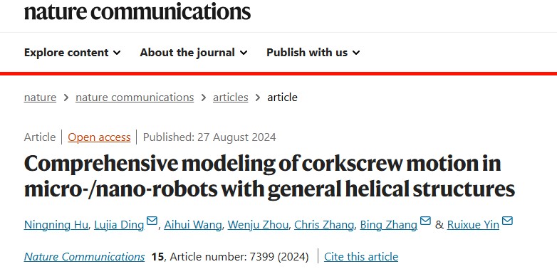 近日,我校365英国上市公司官网殷瑞雪等在《Nature Communications》上发表了题为“Comprehensive modeling of corkscrew motion in micro-/nano-robots with general helical structures”的研究论文,提出一种无结构限制的通用微纳机器人(MNRs)动力学模型,有助于在临床环境中通过定制个体患者来规划MNRs的导航,也有助于了解血液在与MNRs相互作用时的行为,例如血管堵塞等,从而预防MNRs靶向治疗中引起的并发症。