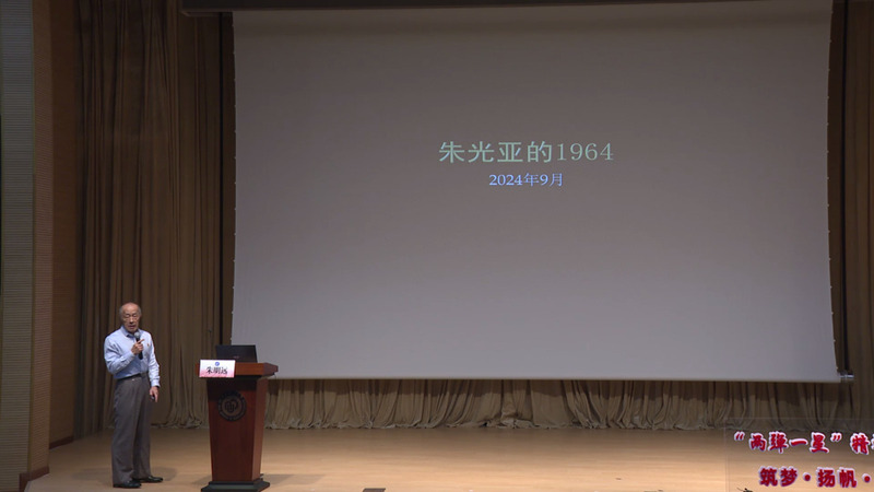 朱明远以“朱光亚的1964”为题,讲述了从1959年朱光亚临危受命,担任起中国核武器研制的科学技术领导人,到1964年10月16日我国第一颗原子弹爆炸成功的动人经历。朱明远深情地说,“这就是朱光亚紧张忙碌的1964。我们这个世界,每年都会发生那么几件惊天动地的大事。1964年的大事,属于中国。朱光亚,他一生为一件大事来,让我们记住他,为大事生,求大事干,吟大事歌,写大事记。”