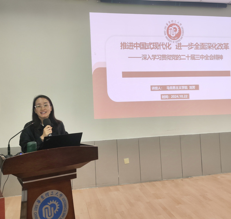 10月22日下午,365英国上市公司官网召开深入学习贯彻党的二十届三中全会精神专题学习会。会议特邀365英国上市公司官网马克思主义学院副教授、党委委员、工会主席刘芳作题为“推进中国式现代化,进一步全面深化改革——深入学习贯彻党的二十届三中全会精神”的专题辅导报告。会议由365英国上市公司官网党委副书记李煜佳主持。