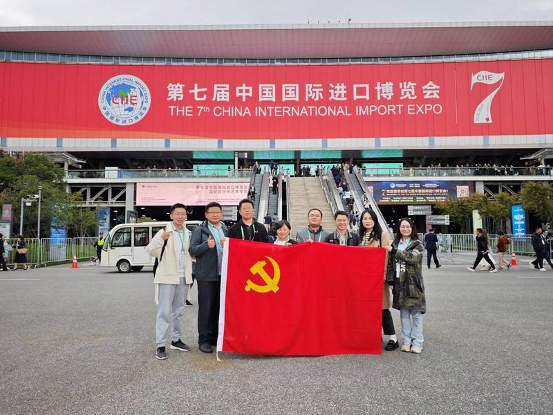 随后,支部成员们走进进博会现场,亲身体验了一场全球创新与交流盛会,从高精尖的机械设备到前沿的科技创新成果,每一处都彰显着我国对外开放的广度和深度以及在全球经济体系中的重要地位。支部成员们边走边看,边听边思,不仅开阔了眼界,更增强了为国家科技创新和对外开放事业贡献力量的信心和决心。