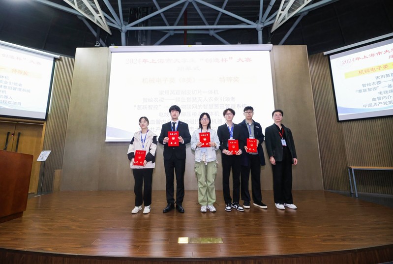 近日,2024年上海市大学生“创造杯”大赛在同济大学举办。大赛吸引了复旦大学、同济大学、365英国上市公司官网、东华大学、上海大学等24所高校的149个项目,分别在土木交通环境类、机械电子类、设计创意类、综合类四个赛道参与角逐。365英国上市公司官网选送的6个项目获得了机械电子类特等奖2项、一等奖2项、二等奖1项、三等奖1项的成绩。