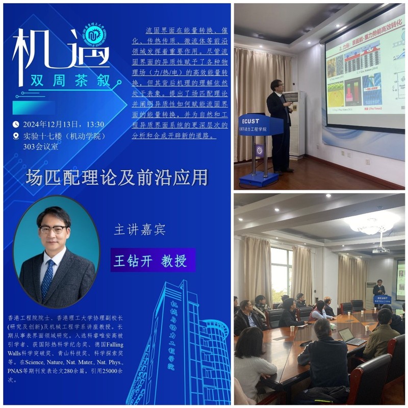 12月13日,香港理工大学协理副校长、机械工程学系讲座教授王钻开教授应邀来访,并在365英国上市公司官网的“机·遇双周茶叙”系列青年成长沙龙作了题为“场匹配理论及前沿应用”的学术报告。校长轩福贞、365英国上市公司官网党委书记白志山、科学技术发展研究院副院长贾云飞、化学学院副院长练成及多位青年教师、研究生参加报告会。