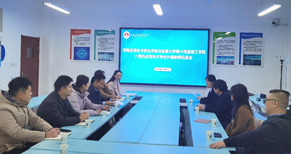 为进一步推进学院中外合作办学项目提质增效,2025年11月17日,学院与加拿大萨斯卡彻温理工学院中加合作办学计算机应用技术专业教学推进会在开封北院举行。中加合作项目主任BruceYu,加拿大外教团队Xin Wang (Alex)和Mayra Samaniego老师,beat365平台官方网站班子成员、教师代表以及科研外事处工作人员等出席会议。会议由副院长夏丽珍主持。