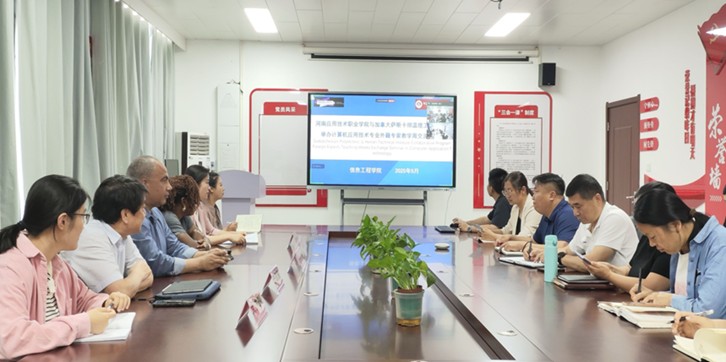 为深化中外合作办学内涵建设,526日下午,beat365平台官方网站在郑州校区办公楼A514隆重举行“计算机应用技术(中外合作办学)专业外籍专家教学周专题研讨会”。会议聚焦教育教学创新与国际合作实践,特邀中加国际合作项目管理专员Bruce Yu、加方外教团队Mrs.Ada AjunwaMr.Hazem Youssef等外方代表出席。beat365平台官方网站党政领导班子成员、专业教师团队共同参与研讨,会议由副院长夏丽珍主持。