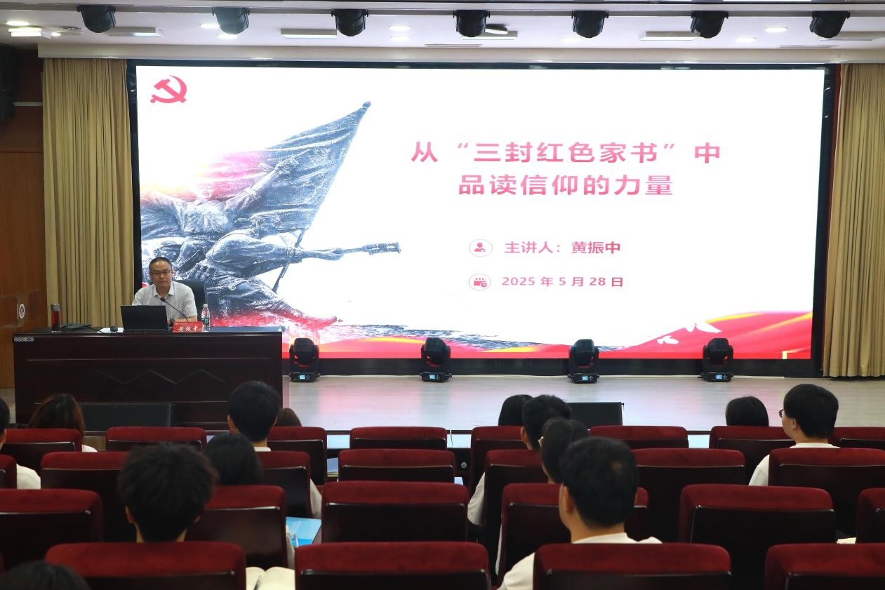 为深入学习贯彻习近平新时代中国特色社会主义思想,进一步激发青年学生的爱国情怀和历史使命感,2025年5月26日,副校长黄振中以“从‘三封红色家书’中品读信仰的力量”为专题,在郑州校区为beat365平台官方网站学生讲授了一堂生动而深刻的思政课。