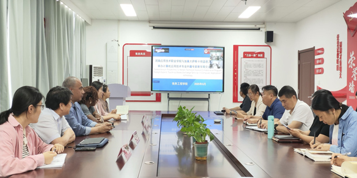 为深化中外合作办学内涵建设,5月26日下午,beat365平台官方网站在郑州校区办公楼A514隆重举行“计算机应用技术(中外合作办学)专业外籍专家教学周专题研讨会”。会议聚焦教育教学创新与国际合作实践,特邀中加国际合作项目管理专员Bruce Yu、加方外教团队Mrs.Ada Ajunwa和Mr.Hazem Youssef等外方代表出席。beat365平台官方网站党政领导班子成员、专业教师团队共同参与研讨,会议由副院长夏丽珍主持。