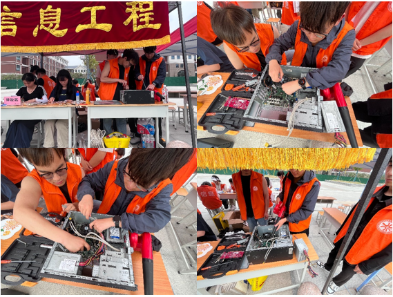 在开封校区活动现场,设置了硬件检测、系统维护、软件调试、设备除尘四大服务区,由计算机应用技术专业教师带队组成的志愿者技术团队,携带专业设备,为师生提供电脑检测、系统安装、病毒查杀等全方位检修服务,并通过知识咨询普及维护常识。为全校师生提供免费清灰、硬件检修等服务,并向现场师生普及网络安全知识。老师现场指导,带领学生开展实战教学,将课堂知识转化为解决蓝屏死机、数据恢复、网络配置等实际问题的能力。