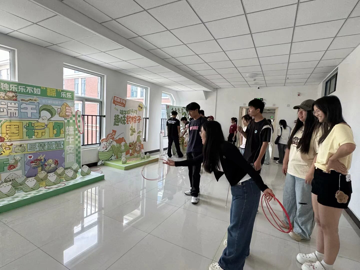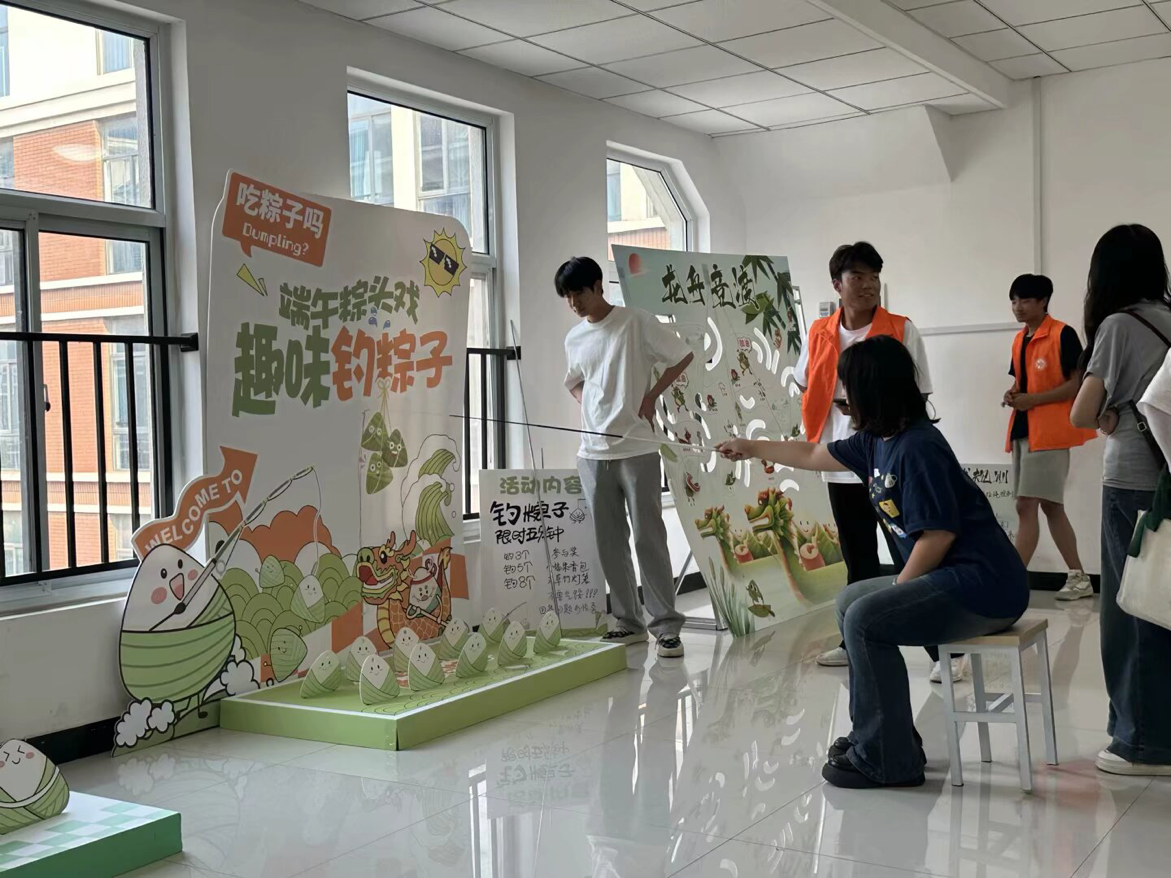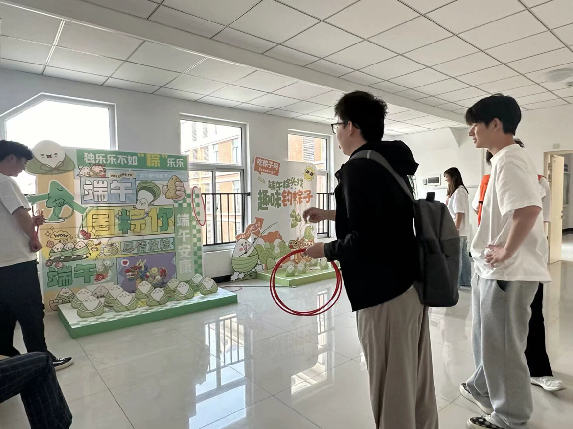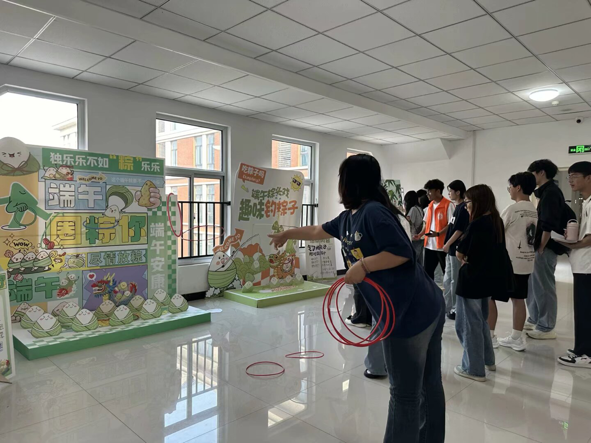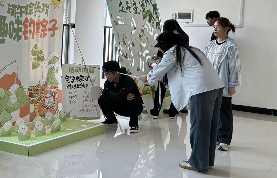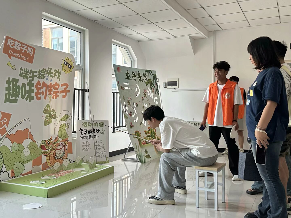 活动搭建了钓粽大作战、套粽子、龙舟竞渡趣味小游戏,邀请路过的师生前来体验。参与活动时,师生们你追我赶、奋勇争先,大家凭借出色的手眼协调力,赢得现场阵阵欢呼和呐喊声,现场氛围热烈活跃。