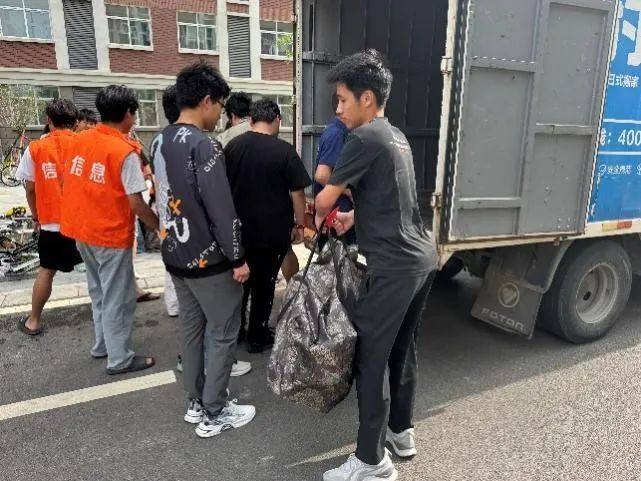 志愿者们积极投身搬迁工作,搬运行李时细致谨慎,以高度负责的态度,保障物品有序转运,尽显担当。