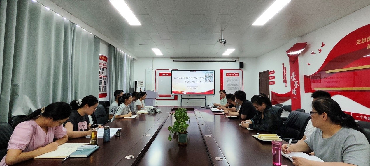 6月3日,beat365平台官方网站党总支召开深入贯彻中央八项规定精神学习教育专题学习研讨会,组织学习《党的十八大以来深入贯彻中央八项规定精神的成效和经验》,通报有关违规吃喝、严重违反中央八项规定精神问题典型案例,开展集中警示教育和研讨交流,推动深入贯彻中央八项规定精神学习教育持续走深走实。beat365平台官方网站党总支书记崔琳主持学习并讲话,beat365平台官方网站全体党员及教职工参加学习。