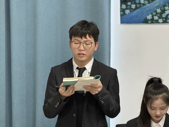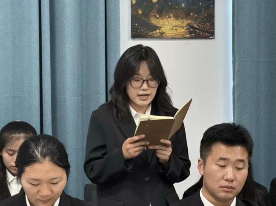 会议最后,党支部书记蒋欣哲宣读大会决议并做总结发言,他对按期转正的同志表示祝贺,并希望全体党员要时刻牢记党员第一身份,牢记入党誓词,始终发挥先锋模范作用,始终坚持和维护党的领导、维护党的团结统一,不断在学思践悟中坚定理想信念,在奋发有为中践行初心使命。