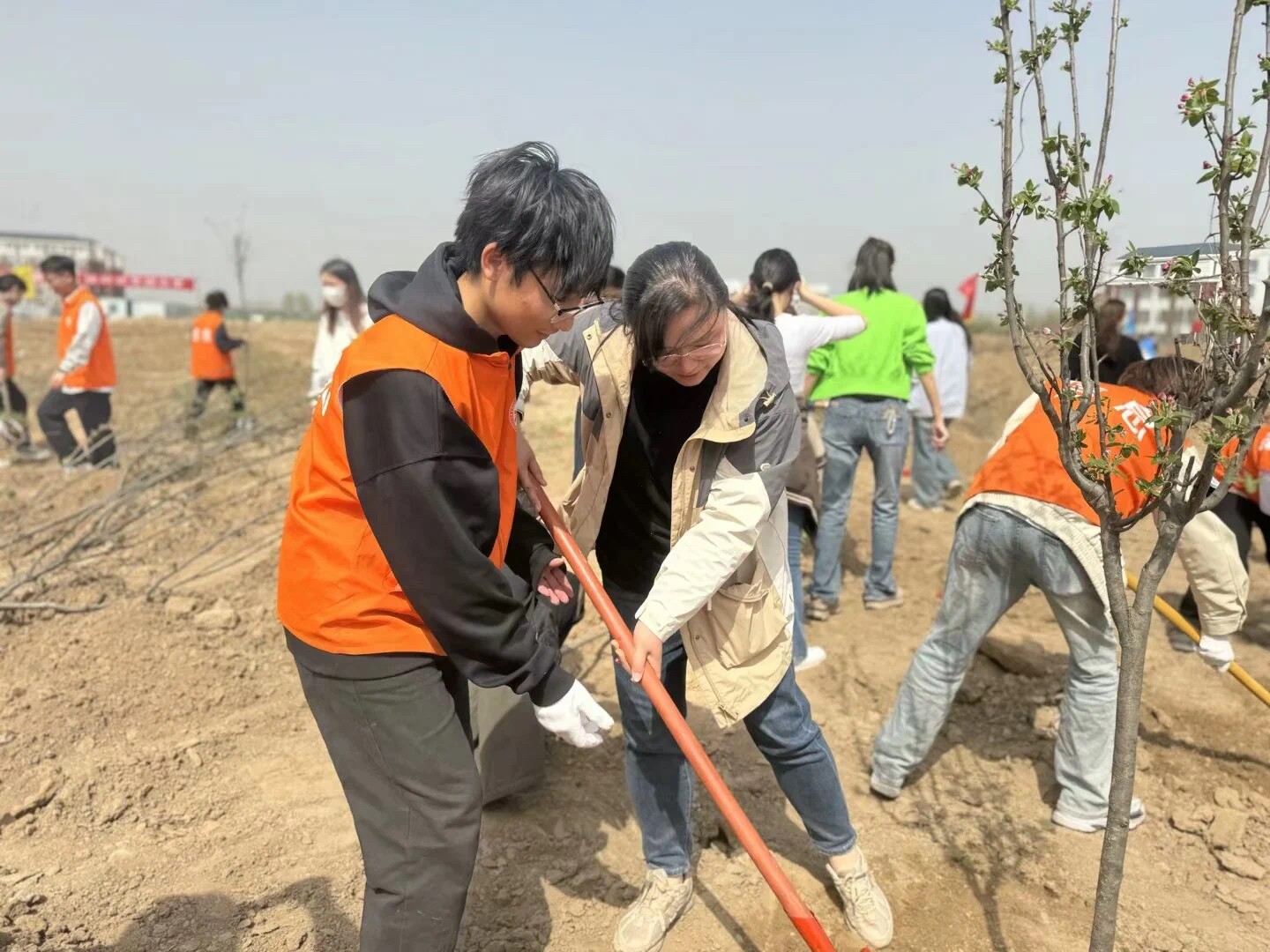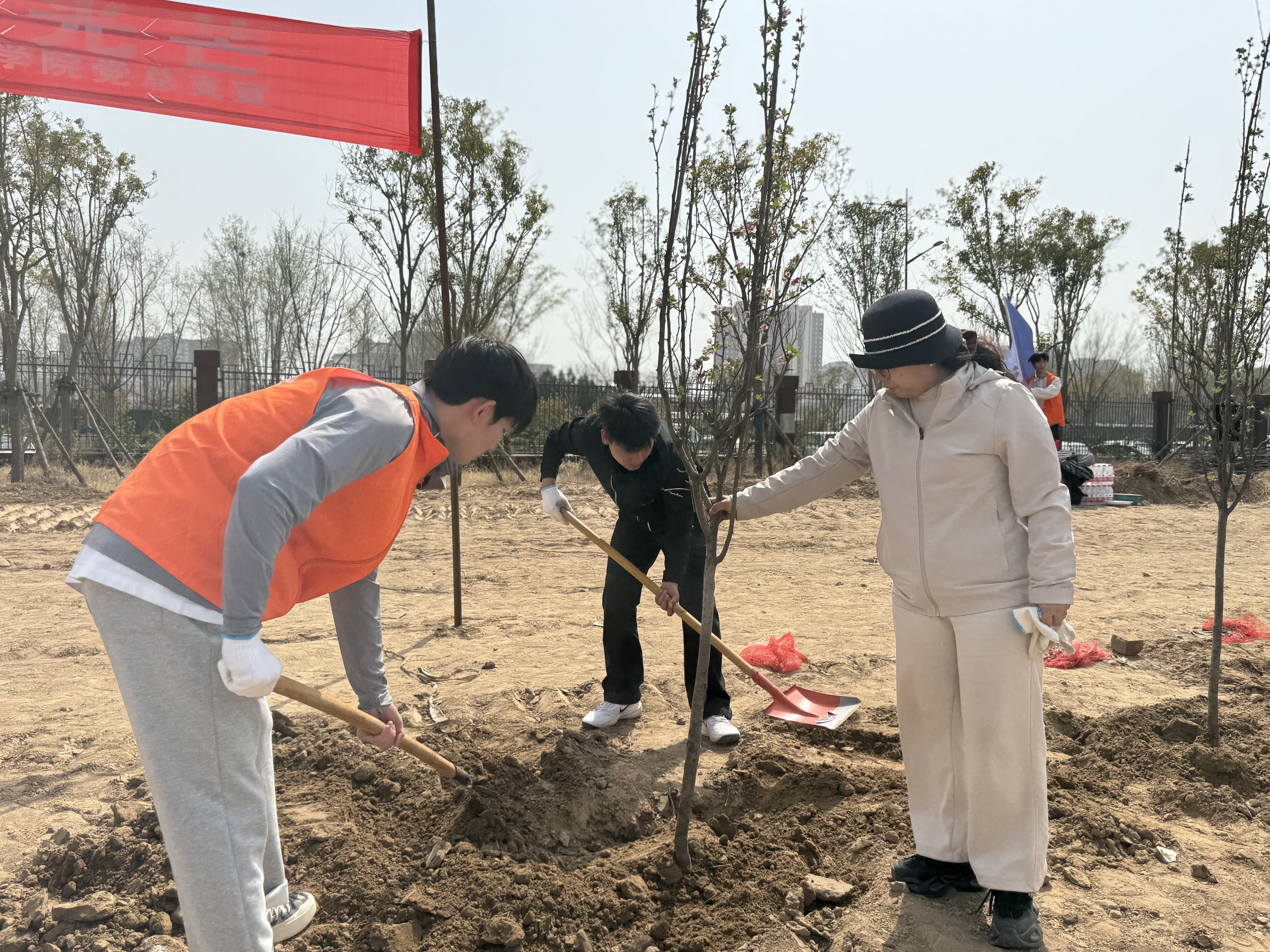 春和景明暖阳日,植树添绿正当时。为深入宣传贯彻习近平生态文明思想,进一步弘扬雷锋精神和“奉献、友爱、互助、进步”的志愿精神,结合学雷锋实践活动,2025年3月25日,beat365平台官方网站党总支书记崔琳率43名党员、团员代表,在开封校区北院开展“党建引领添新绿,义务植树践初心”义务植树主题党日活动,共同以实际行动为应院增添新绿,助力生态文明建设。