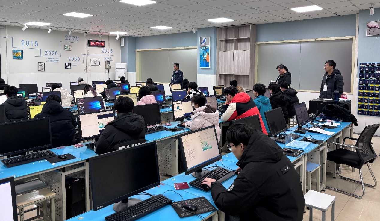 学院高度重视考务工作,考前完成考务方案制定、考场布置、设备调试等各项筹备任务。考试期间,学院对两个校区各考场开展实地巡查,重点检查考务组织落实情况、考场环境保障措施及考试设备运行状态,并密切关注学生答题情况。当日巡查结果显示,各考场秩序井然,考试系统与服务器运行稳定,监考人员履职尽责,考生严格遵守考试纪律,整体考试流程规范、平稳、有序。