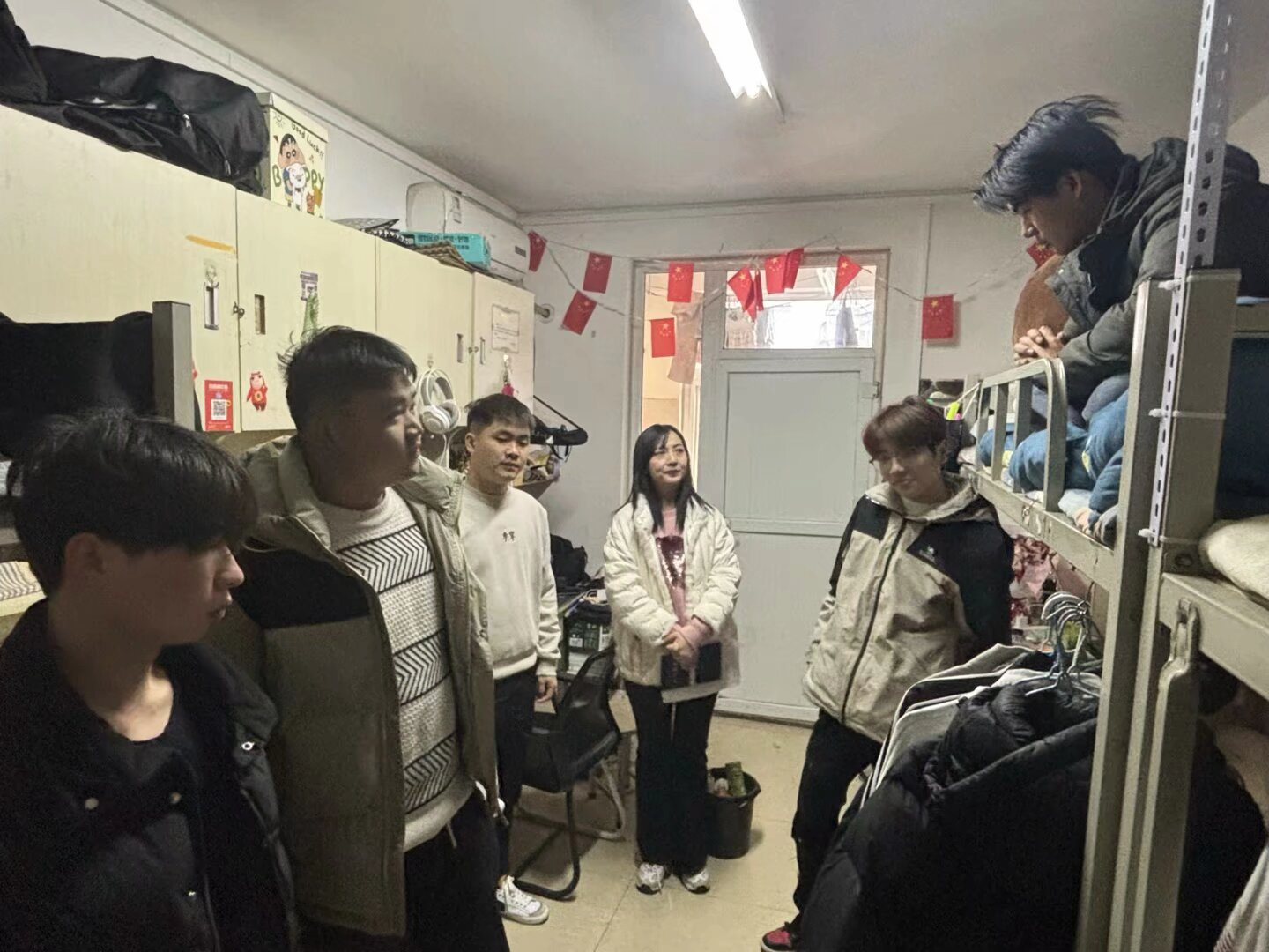 会议结束后,崔琳带领全体辅导员通过"查隐患、送关怀、促整改"的方式,为新学期学生生活保驾护航。