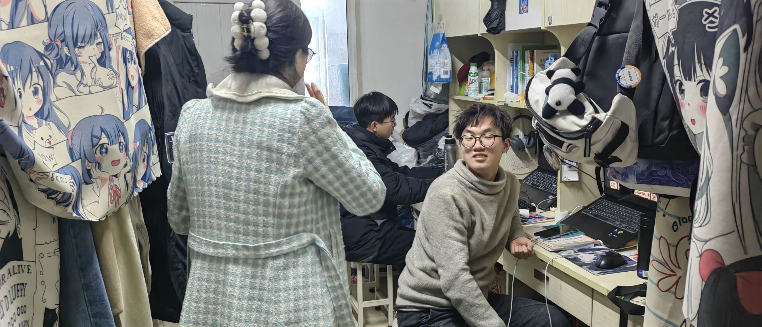 走访过程中,辅导员逐间检查宿舍用电安全,重点查看插线板使用规范、电器摆放位置等情况。并主动询问学生返校适应情况,针对宿舍阳台杂物堆积问题,辅导员联合班委现场制定清理及整改方案。宿舍走访既体现了学院管理的规范化要求,更彰显了"以生为本"的教育理念。