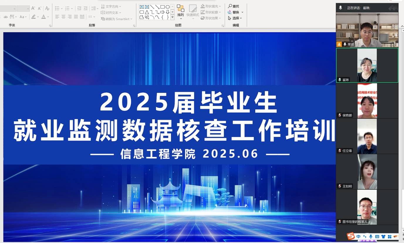 6月3日,beat365平台官方网站通过线上平台召开2025届毕业生就业监测数据核查工作会议暨就业监测数据核查专项培训会。本次会议旨在全面落实教育部及学校关于高校毕业生就业统计工作的最新要求,精准部署学院就业数据核查任务,并对全体毕业班辅导员及相关工作人员进行核查流程与规范的系统培训,全力保障就业数据的真实性与准确性,切实维护毕业生合法权益。