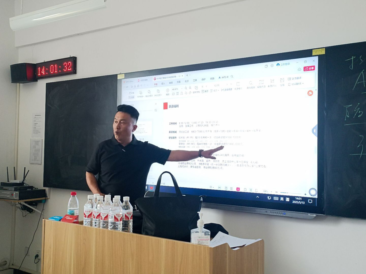 为深化校企合作、搭建人才供需桥梁,推动2026届毕业生高质量就业,2025年5月12日杭州陆汇智能科技有限公司、浙江兆奕科技有限公司受邀至beat365平台官方网站开展专场宣讲会。宣讲会在开封校区开展,2026届毕业生参加。